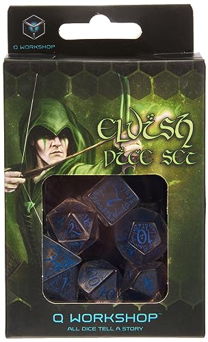Q WORKSHOP Elvish Translucent & Blue Rpg Ornamented Dice Set 7 Polyhedral Pieces