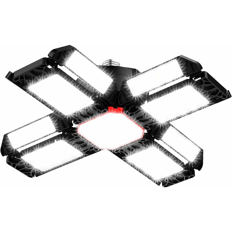 Luce da garage a LED super luminosa - Rispetto ad altre sorgenti luminose, la nostra ultima luce da garage a LED deformabile da 200 W ha 13 pannelli luminosi a LED e 228 perline di lampada a LED ad altissima luminosità, con luce diurna da 6500 K e 20000 lumen, che forniscono un'illuminazione interna ottimale.< /p> Illuminazione a 360° e design deformabile - I pannelli di illuminazione per garage pieghevoli aggiornati possono essere regolati in modo flessibile da 0° a 90° per il miglior angolo di illuminazione. Nota: assicurarsi che la luce sia spenta e raffreddata per evitare ustioni. Questa luce per garage per interni copre completamente aree a 360° senza oscurità, il che è meno possibile per altre normali lampadine. Facile da installare, nessun cablaggio richiesto - L'illuminazione per garage è facile da installare, senza attrezzi, cavi o elettricisti professionisti necessario. Basta avvitarlo nella base E26/E27 e l'installazione è facile come una lampadina a incandescenza. Nota