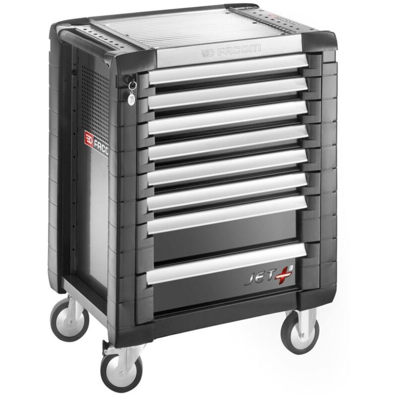 • 8 cassetti = 24 moduli, divisi nei compartimenti push 60 e 130 mm: - 6 cassetti, altezza 60 mm = 18 moduli - 2 cassetti, altezza 130 mm = 6 moduli • I cassetti da 200 e 270 mm possono anche assorbire i moduli. • Consegna con 10 divisioni per cassetti da 60 mm. • Carico di protezione totale nei cassetti: 170 kg. • Capacità: 150 litri. • Dimensioni totali (comprese le ruote e il piano di lavoro, L x W x H): 774 x 546 x 971 mm. • Dimensioni dell'utente dei cassetti (L x W x H): 569 x 421 x 60 /130 mm.