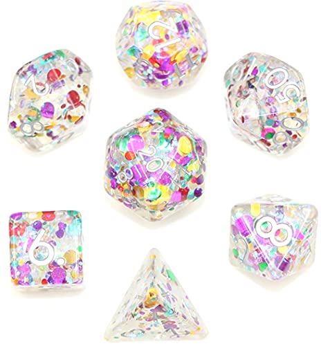 World of Dice Set di dadi con coriandoli - 7 pezzi per gioco di ruolo per penna e paper, ad esempio Dungeons and Dragons, occhio nero, Pathfinder