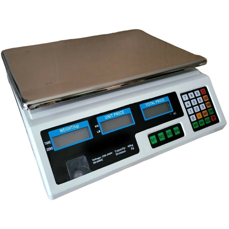DESCRIZIONE: Questa bilancia digitale da 2 gr. a 40 kg. può essere usata sia tramite corrente ma anche tramite la batteria interna ricaricabile infatti per ricaricare la batteria interna basta collegarla alla rete elettrica dotata di indicatore batteria. Ottima sia per uso privato ma anche per uso professionale come ambulanti grazie alla sua batteria interna si ha la possibilità di usarla su banchi da lavoro. Questa stadera viene molto usata nel ambito dei mercati. Con questa bilancia avete la possibilità di pesare e avere anche il controllo dei prezzi della merce pesata basta memorizzare al kg. il prezzo della merce. Dispone anche di bolla in bagno d'olio in modo che potete posizionarla sempre in perfetto livello per darvi il peso preciso al 100 x 100 con 4 piedini regolabili per metterla a livello Dotata di piano per pesare la merce in acciaio INOX 34 x 24 cm. circa Tasti di memoria, memorizzazione dei prezzi al kg fino a 7 operatori autotaratura, e la cosa più importante è dotata