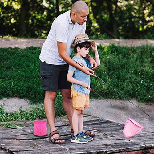 Worown 1 confezione di reti telescopiche a farfalla, reti da pesca estensibili con 1 secchio d'acqua pieghevole per catturare insetti e insetti giocare all'aperto (rosa)