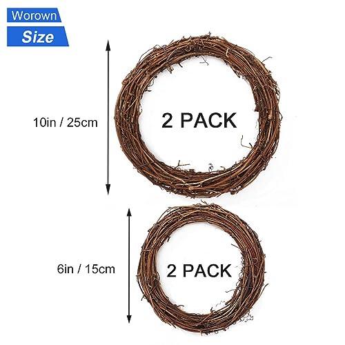 Worown 4 ghirlande di vite naturali (15 e 25 cm) in rattan per fai da te, decorazioni per porte d'ingresso, decorazioni per matrimoni e feste