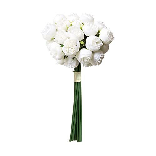 Worparsen Falso fiore dissolvenza - bellissimo fiore artificiale camelia confortevole al tatto compatibile con matrimonio 1 bouquet bianco