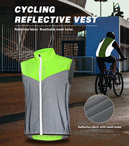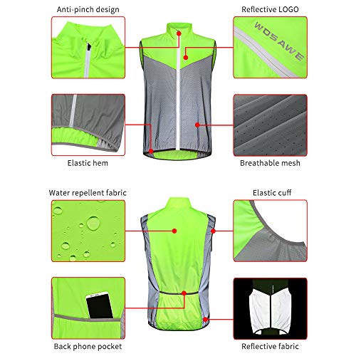 WOSAWE Uomini ciclismo gilet riflettente all'aperto corsa jogging traspirante senza maniche sottogiacca notte giacca gilet(Verde M)