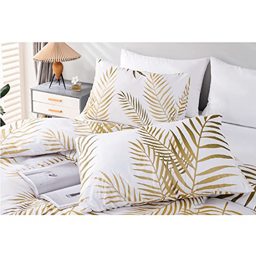 Wotcsil Set Copripiumino Matrimoniale Foglia Tropicale Dorata Completo Copripiumino d'Oro Bianco Stampa Metallica con 1 x Copripiumino 230x260cm e 2 x Federe 50x90cm Bianco