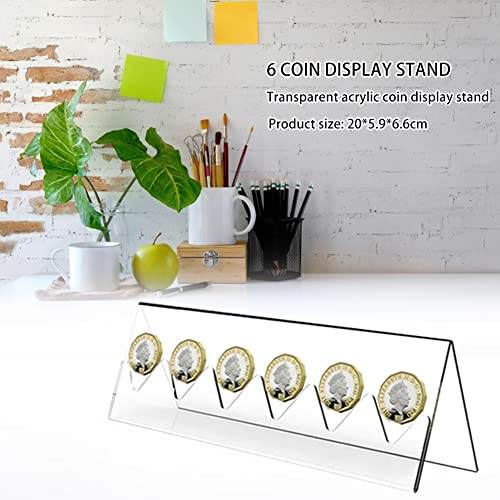 WOTEG Espositore per 6 Monete, Espositore per Monete Challenge a 6 Slot, Supporto per cavalletto in Acrilico Trasparente per Display Monete Challenge Medals Casino Chips