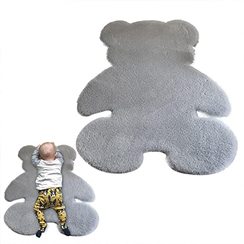 WOTEG Morbido tappeto a forma di orso - Tappeto antiscivolo con decoro in peluche - Tappeto in morbida pelliccia sintetica, soffice tappeto da camera per la casa, soggiorno, divano, pavimento, camera