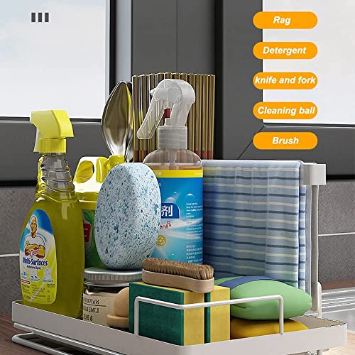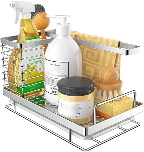 Wotendy Organizer Lavello Cucina, Porta Spugna Lavandino Cucina Per Lavello Porta Spugna Cucina Caddy Organizer Porta Utensili con Rimovibile Vassoio Gocciolamento, Argento