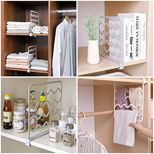Uso versatile】 Questo set di 4 divisori per scaffali vi aiuterà a massimizzare lo spazio nell'armadio! Gli eleganti organizzatori consentono di dividere gli ampi ripiani per impilare facilmente oggetti come vestiti, asciugamani, coperte e biancheria in pile ordinate e alte, aumentando lo spazio di archiviazione. Separano scarpe, borse e borsette sullo stesso ripiano.