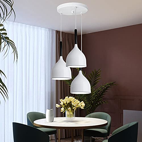 WOTTES Lampada a Sospensione Industriale, Luce a Sospensione Edison Moderna e Minimalista, 3 Teste E27, Adatta per Cucina, Sala da Pranzo, Salotto, Decorazione del Bar (Bianco)