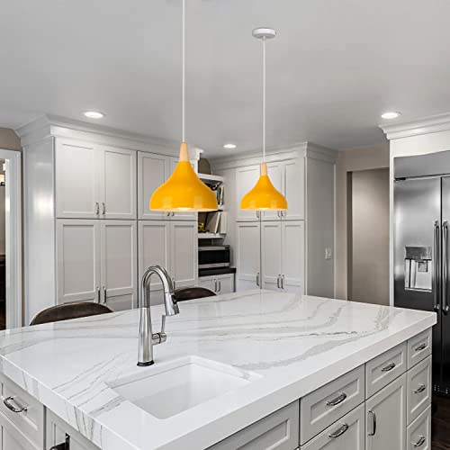 WOTTES Lampada a Sospensione Lampadario Industriale in Metallo Lampade LED Paralume in Alluminio Regolabile in Corda per Soggiorno Cucina Ristorante Camera da Letto (Giallo)