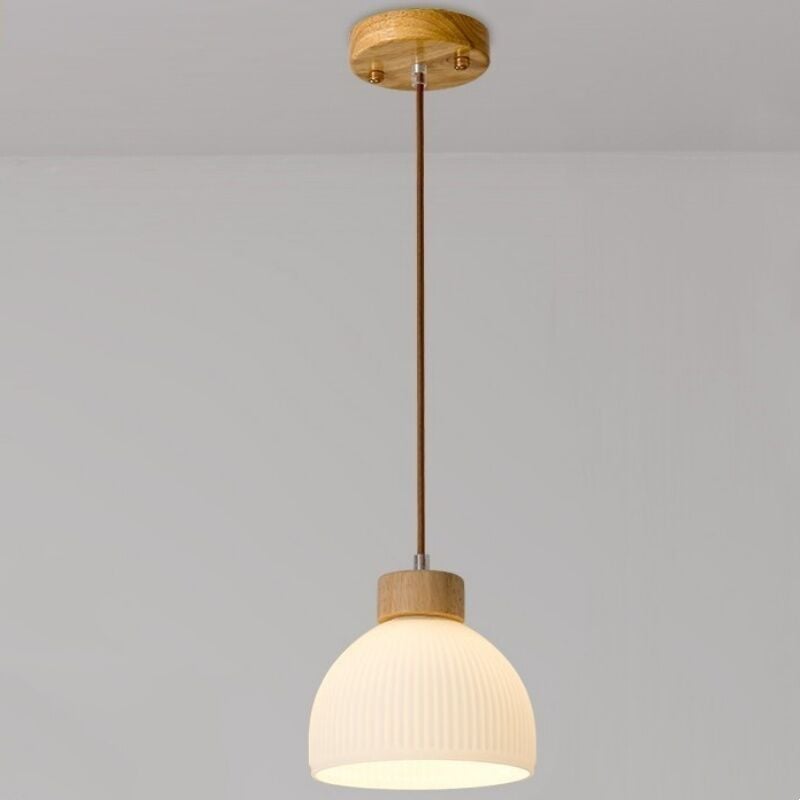 Elevata trasmissione luminosa ♥ Questo lampadario presenta un paralume in vetro altamente trasmissivo che massimizza l'area di illuminazione. La luce emessa attraverso il vetro è uniforme, morbida e priva di abbagliamento. Il paralume non si corrode né arrugginisce e deve essere pulito solo una volta con acqua. ♥ Legno di alta qualità ♥ Gli altri accessori sono realizzati in legno di alta qualità, con una struttura chiara e pulita, morbida al tatto, resistente all'umidità e senza crepe. La base del piano di lavoro è realizzata in legno di gomma ispessito, che ha un'elevata capacità di carico ed è resistente e durevole. ♥ Bellissime linee ♥ Utilizza elementi lineari geometrici per evidenziare la bellezza dell'arte semplice. Questo design sobrio e raffinato crea un'atmosfera di vita calda, confortevole, semplice e calda. Appositamente dotato di un cordino lungo 150 cm, che può essere regolato continuamente all'altezza ideale. ♥ Facile da installare ♥ Il lampadario ha una struttura