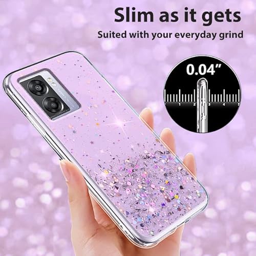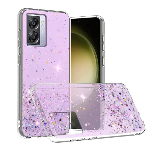 Wousunly Compatibile con Cover Oppo A77 5G Glitter Trasparente,Custodia Oppo A57 5G Sottile Silicone Brillantini Case (Viola)