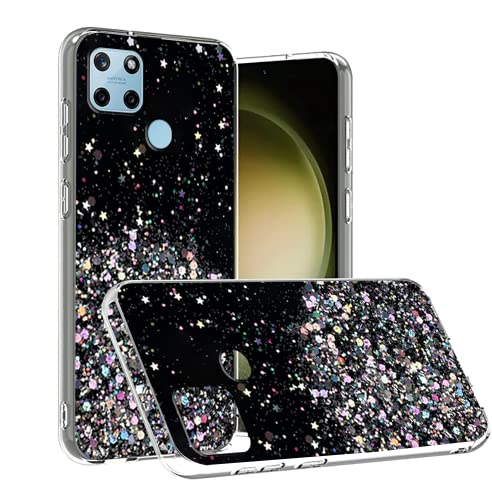 Wousunly Compatibile con Cover Realme C25Y Glitter Trasparente,Custodia Realme C25Y Sottile Silicone Brillantini Case (Nero)