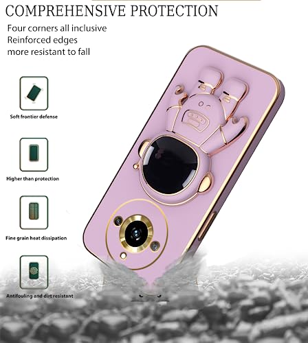 Wousunly Compatibile con Cover Realme 11 Pro Silicone TPU Antiurto,Custodia Realme 11 Pro Plus con Supporto Astronauta 3D Sottile Anti-Graffio Case (Viola)
