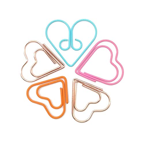 WOVELOT 100 Pezzi un Forma di Cuore un Forma di Piccoli Fermagli Clip di Segnalibri per Ufficio Scuola Casa Graffette nel Metallo Clip nel Oro Rosa