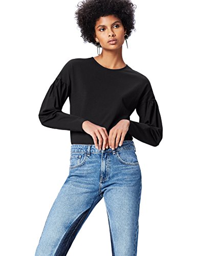 Find. Woven Full Sleeve, Maglia a Maniche Lunghe Donna, Nero (Black), X-Small