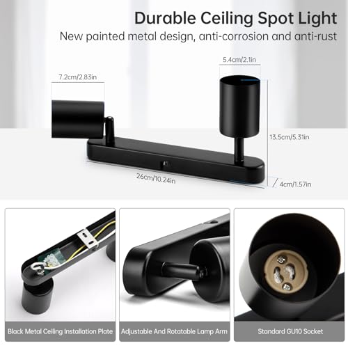 【Facile da Installare】Fissare la staffa al soffitto o alla parete, quindi montare il faretti da soffitto orientabile sulla staffa. La lampadina può essere facilmente inserita e sostituita con l'attacco standard GU10. Le lampadine GU10 non sono incluse. È possibile scegliere la lampadina GU10 preferita per un effetto di illuminazione personalizzato.