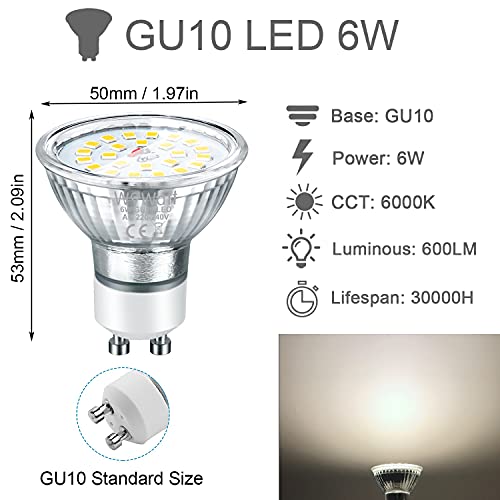 Wowatt GU10 LED 10 x Lampadine Faretti GU10 6W 600lm Equivalenti a Alogene da 50W Luce Bianca Fredda 6000k Incasso Soffitto Soggiorno Super Risparmio Energetico 220V Non dimmerabile