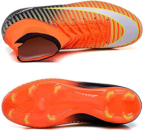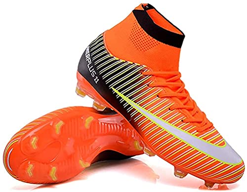 WOWEI Scarpe da Calcio Uomo Scarpe Sportive Tacchetti High Top Spikes Scarpe da Unisex Bambini Professionale all'aperto Scarpe da Calcetto Unisex Scarpe da Allenamento (Arancia, 40)