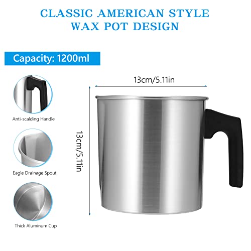 Wowlela Pentola per la produzione di candele, pentola per cera da 1,2 litri con manico resistente al calore, brocca per la produzione di candele in alluminio, forniture per la produzione di candele