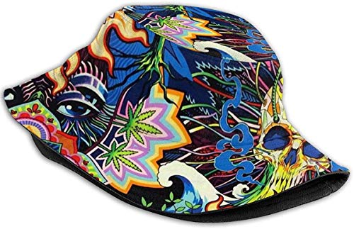 WowMyGod Cappello da Pescatore Bucket Hat Packable Reversible Marijuana Pot Psychedelic Acid Print Sun Hat Fisherman Hat cap Outdoor Camping Fishing Safari for Men Women Black