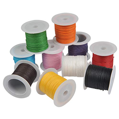 WOWOSS 10 Pezzi Filo Cotone Cerato, 100m Cordoncino Cerato 1mm Filo Gioielli Filo di Cera per Collane, Braccialetti e Macrame, Filo Macrame, 10m/Rotolo