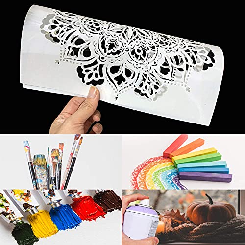【Materiali di qualità】 Gli stencil mandala sono realizzati in plastica PET ecologica, resistente e leggera, semitrasparente e lavabile, possono essere utilizzati a lungo.