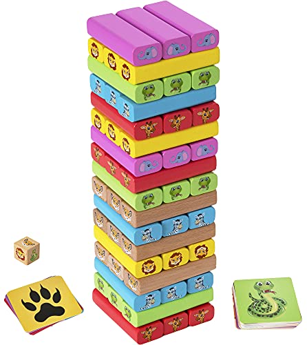 HTI Wowow Toys Wood Works - Torre di gioco con animali in legno, 2 giochi in 1, giocattoli sensoriali per bambine e bambini dai 3 anni in su
