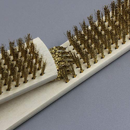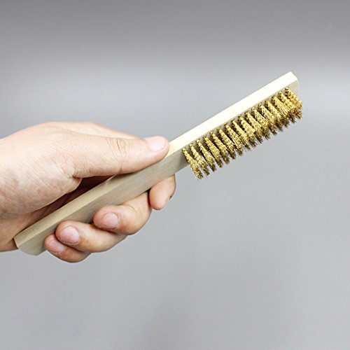 WOWOWO Spazzola per Graffi in Filo di Rame con Manico in Legno briste in Ottone 208mm per la Pulizia del Metallo