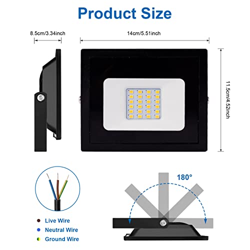 【Super Luminoso e Risparmio Energetico】: Questo Faretto LED da Esterno ha un'eccellente luminosità e illuminazione, molto più luminose delle lampadine tradizionali, e può risparmiare fino all'80% di elettricità. Proiettore ha un angolo di uscita di 120 gradi, assenza di ombre, assenza di abbagliamento, ampia radiazione di luce diffusa e una distanza di irradiazione maggiore.