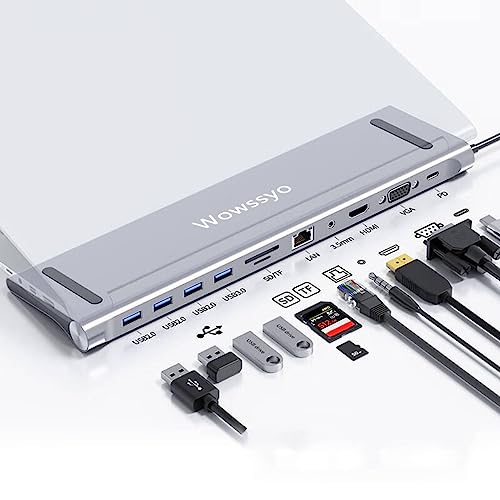 Wowssyo USB C Hub 11 in 1, Adattatore USB C per MacBook Pro/Air, HDMI 4K VGA PD 100W Ethernet SD/TF Audio USB 3.0/2.0, per iPad Pro m1, XPS,Pro7/Pro X Chromebook Samsung Huawei,PC Portatili