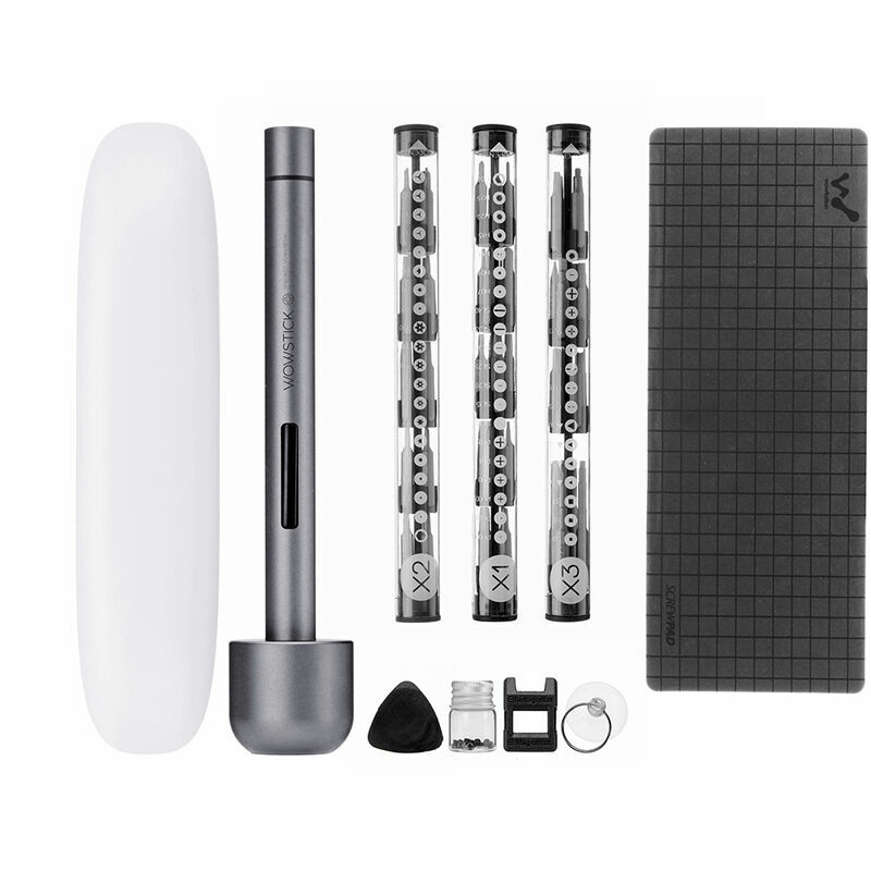 Specifiche del produttore: Alimentazione: 2 batterie AAA (non incluse) Coppia: 0,2/3 Nm Velocità: 100 giri/min + o - 10% Autonomia di lavoro: circa 8 -24 ore Dimensione della testa del lotto: 4x 28 mm Dimensione della punta del cacciavite: Rotazione: avanti, indietro e autobloccante Dimensioni Dimensioni del prodotto principale: 175 mm (L) Peso del prodotto principale: 38 g Caratteristiche: Wowtation 1F Pocket Size è il miglior innovativo cacciavite elettrico cordless portatile per elettrodomestici, elettronica, hobby e artigianato, realizzato in lega di alluminio di qualità per lunga vita. Il potente cacciavite cordless tascabile viene fornito nella sua custodia per un comodo trasporto La lega di alluminio di alta qualità assicura che sia fatto per durare nel tempo /> Viene fornito con 56 diverse teste delle viti e compatibile con punte esagonali standard da 1/8 di pollice assicura che tu possa sempre trovare la dimensione giusta per soddisfare ogni esigenza 100 RPM lo rende