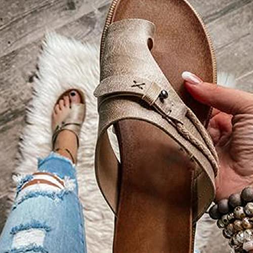 Woyada - Sandali da donna Orthotics, con punta aperta, con tacco piatto, in pelle PU, casual, da passeggio, per casa, spiaggia, viaggi all'aperto