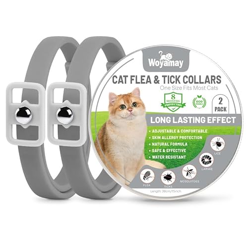 Woyamay Collare Antiparassitario per Gatti, Collare Antipulci Gatto Regolabile Resistente All'Acqua, 8 Mesi Protezione, Naturale Collare Antizecche per Gatti Adatto a Tutti i Gatto, Grigio (2 Pezzi)