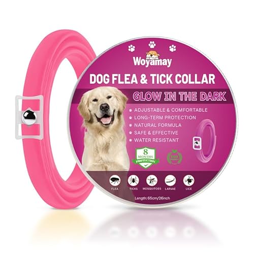 Woyamay Collare Antiparassitario per Cani, Luminoso Collare Antipulci Cane Impermeabile, Regolabile Collare Antizecche per Cani Naturale 8 Mesi di Efficacia Protezione per Tutti i Tipi di Cani, Rosa