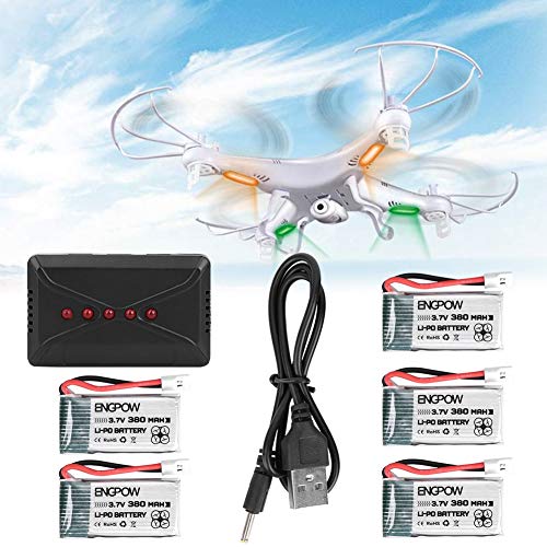 Woyisisi Batteria Lipo 3.7v 380mah Caricatore Adatto per X4 H107c H107l H107d(5Battery)