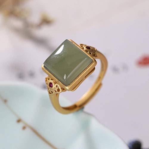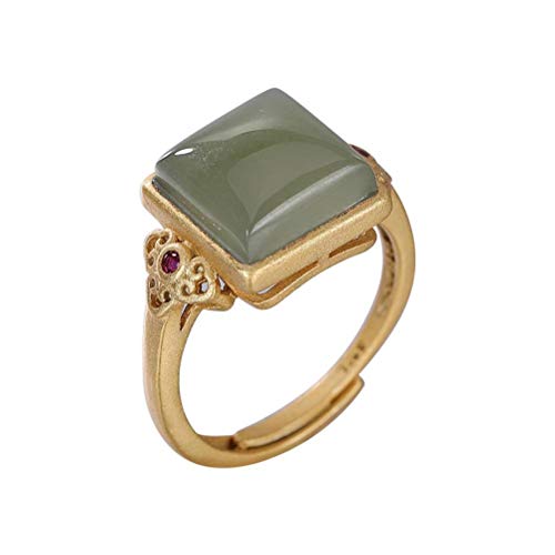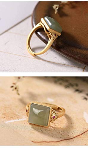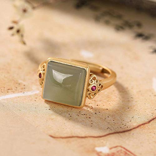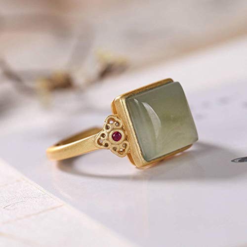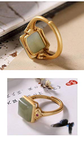 WOZUIMEI Anello in Stile Cinese Gioielli S925 Anello in Argento Puro Nefrite Naturale Giada Bianca Verdastra Xiangyun Retro Personalità Apertura Femminile Anello Placcato in OroApertura regolabile