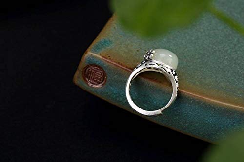 WOZUIMEI Anello in Stile Cinese Gioielli S990 Vintage Farfalla Fiore Intarsiato Naturale Nefrite Giada Bianca Femminile Anello Aperto in Argento Puro Di Alta QualitàCome mostrato