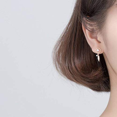 WOZUIMEI Mori S925 Dreamcatcher Fantasia a Base D'Argento Orecchini Traforati Gioielli Stile Orecchini in Piuma Art Style Cortaoro e rosa, Argento 925