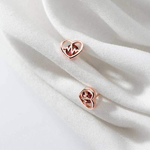 WOZUIMEI S925 Fungo Bianco Chiodo Femminile Stile Coreano Temperamento Moda Diamante Rosso Semplice Dolce Battito Cardiaco Orecchini Amoreoro rosa
