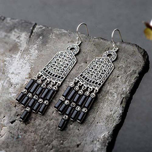 WOZUIMEI Orecchini in Stile Cinese Eardrop S925 Argento Intarsiato a Mano Argento Antico Thailandese con Nappe Orecchini Lunghi in Agata Nera Orecchini Stile Retrò da Donnanero