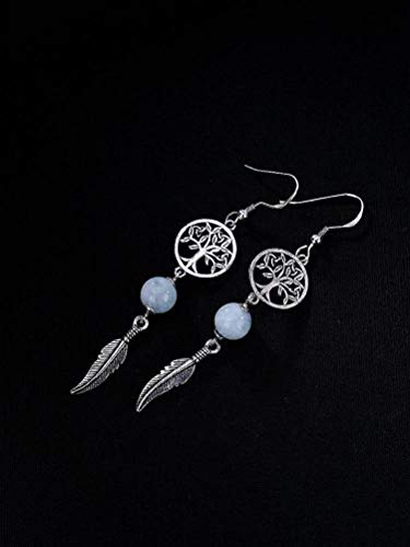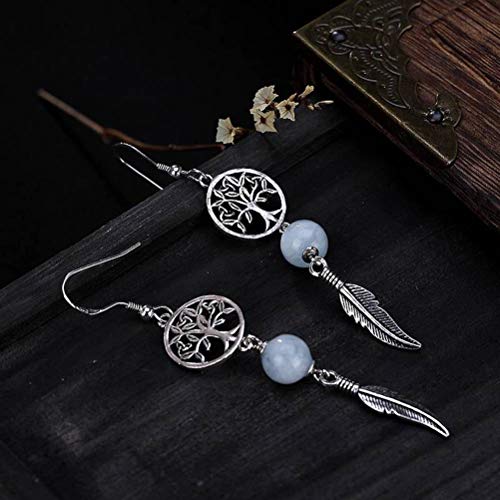 WOZUIMEI Orecchini in Stile Cinese Eardrop S925 Argento Sterling Retro Personalità Acquamarina Naturale Perline Rotonde Orecchini Femminili Piuma VuotaCome mostrato
