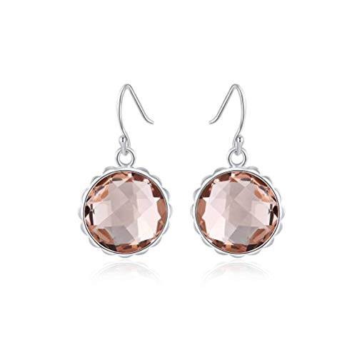 WOZUIMEI Orecchini in Stile Cinese Eardrop S925 in Argento Sterling Semplici Orecchini in Cristallo Verde Rotondo Sfaccettato Femminile Orecchini in Morganite Coreana Gioielli Dell'OrecchioRosa