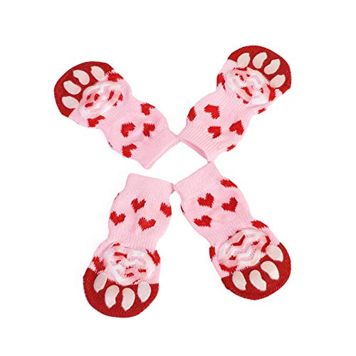 WPCASE Calzini per Cani Calzini Antiscivolo per Cani Rinforzati Controllo Trazione per Interni Calze per Gatti Animali Domestici Taglie Mini Grandi Pink,S