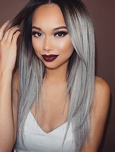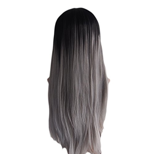 WPQES -Nero al Grigio Colore Sintetico-Parrucca da Donna ondulata