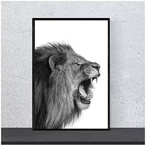 WQFairy Quadro su Tela Stampa Leone e leonessa Poster su Tela Nero Bianco Bosco Animali Nursery Quadro su Tela per Soggiorno (2 Pezzi 50x70 cm Senza Cornice)