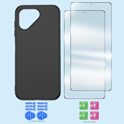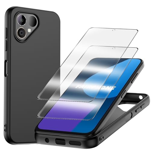 WQRTYJK Cover per Fairphone 5, con 2 Pack Pellicola Vetro Temperato, Custodia Silicone Morbida TPU Ultra-Sottile AntiGraffio Antiurto Case, Nero