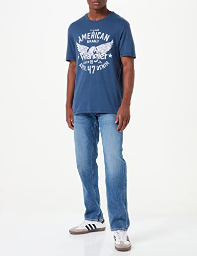Wrangler Americana Tee Camicia, Blu (Dark Denim), Small Uomo